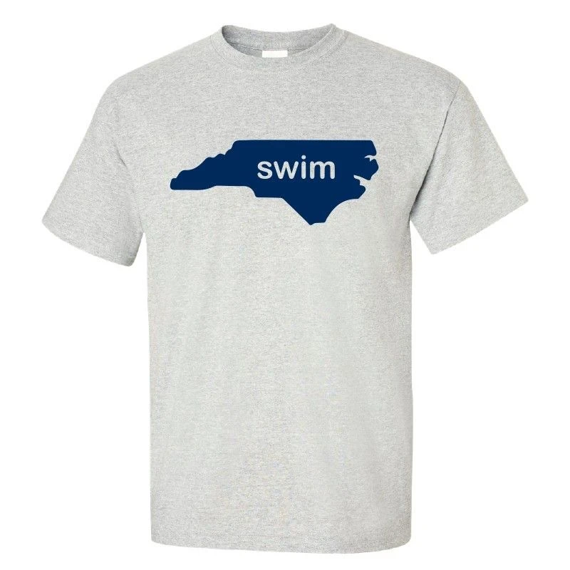 Pre-shrunk 100% cotton T-shirt featuring North Carolina Swim graphic on the front.